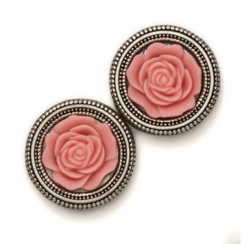 24mm size MagneButton with Low Relief 3D Resin Rose Design