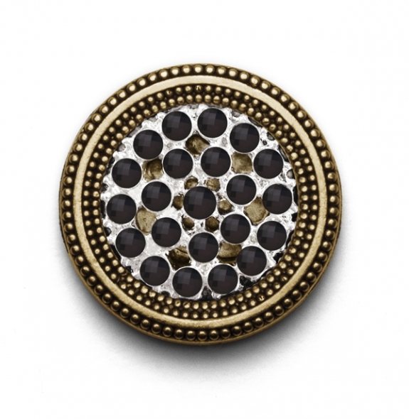 24mm size MagneButton with 22 Mounted Black Rhinestone Crystals and Gold Tone Button